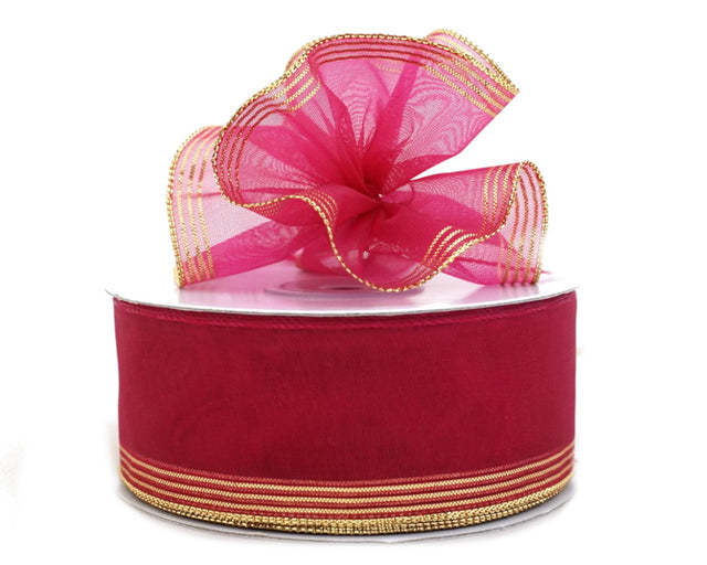 1.5"x25 yards Fuchsia/Gold Organza Pull Bows Gift Ribbon