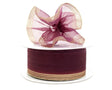 A rich burgundy organza pull bow ribbon with gold trim, perfect for adding a warm and elegant touch to your gifts and décor.