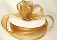 A classic old gold organza ribbon with satin edges and gold trim, perfect for adding a luxurious and sophisticated touch to your décor and gift wrapping.