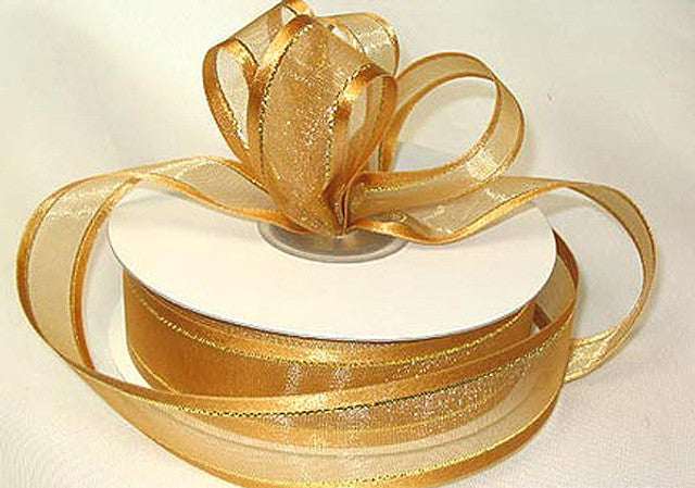 1.5"x25 yards Old Gold Organza Satin Edge with Gold Trim Gift Ribbon