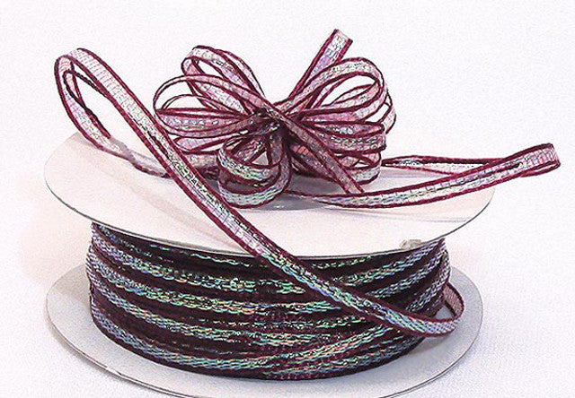 1/8"x50 yards Burgundy Organza Pull Bows Ribbon with Iridescent Edge