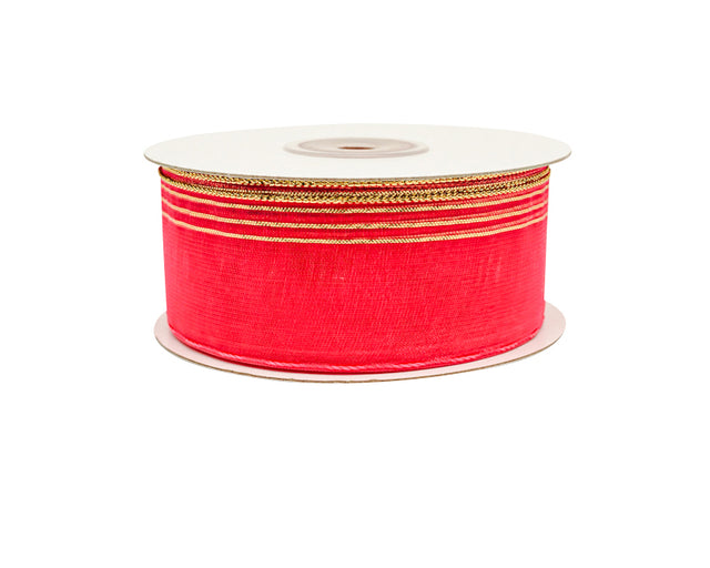 Fun and glamorous, this shocking pink organza ribbon with a gold edge is perfect for adding a pop of bold color to your gifts and décor.