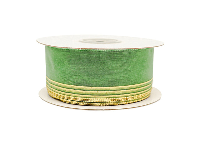 1.5"x25 yards Sage Green /Gold Organza Pull Bows Gift Ribbon