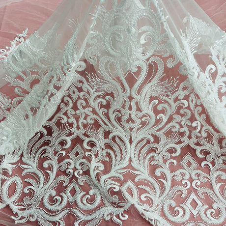 1 Yard Luxurious Beaded Lace Fabric Embroidered on Polyester Net Mesh