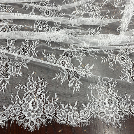 3 Yards Chantilly Embroidered Lace Fabric with Eyelash Scallop