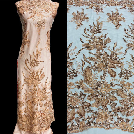 1 Yard Sequin Embroidered Tulle Fabric, Gold, Silver, and Rose Gold