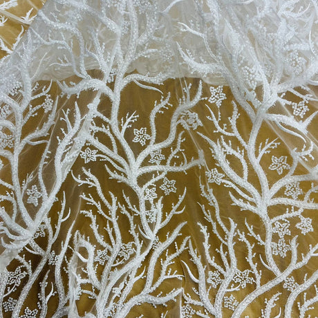1 Yard Beaded Lace Fabric Embroidered on 100% Polyester Net Mesh | Off White, Ivory