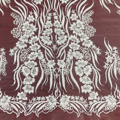 1 Yard Beaded Lace Fabric Embroidered on 100% Polyester Net Mesh | Ivory