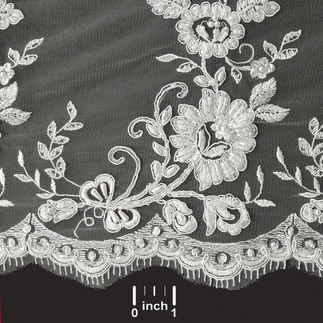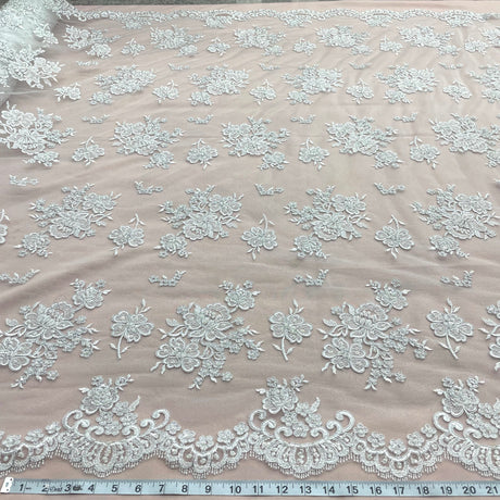 1 Yard Elegant Corded Bridal Lace Embroidered on Soft Polyester Net Mesh Fabric