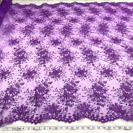 1 Yard Floral Embroidered Lace Fabric for Bridal Evening Gowns 52 inch Width