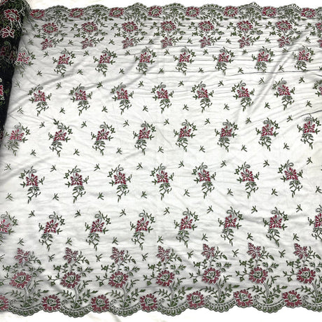1 Yard Corded Bridal Lace Fabric Embroidered on Polyester Net Mesh Width 53 Inches