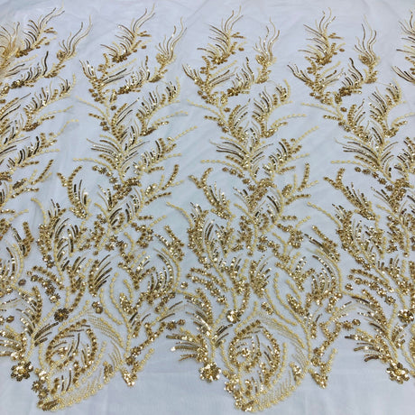 1 Yard Beaded Sequined Lace Fabric Embroidered on Polyester Net Mesh Width 54 Inches