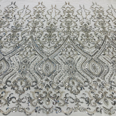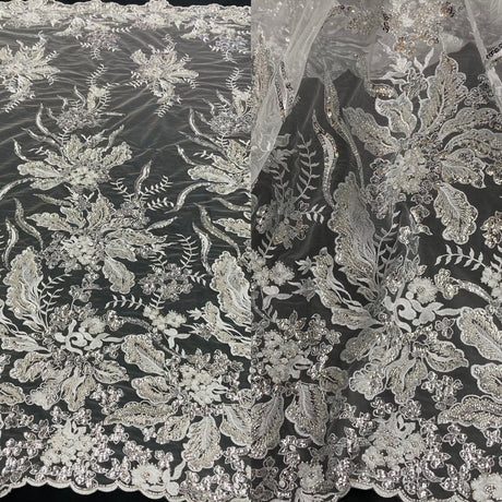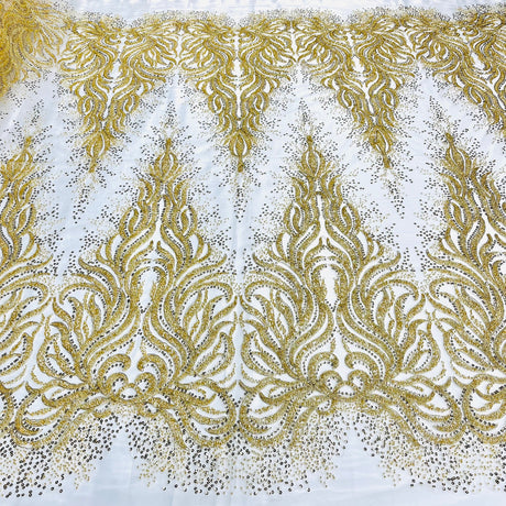 1 Yard Gold Beaded Lace Fabric Embroidered on Polyester Net Mesh 50 Inch Width