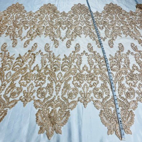 1 Yard Luxurious Corded Embroidered Bridal Lace Fabric for Couture Dresses White
