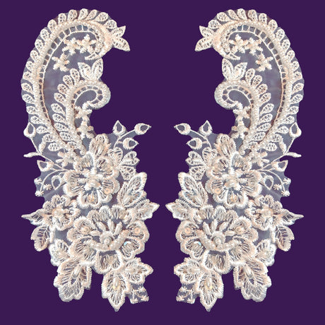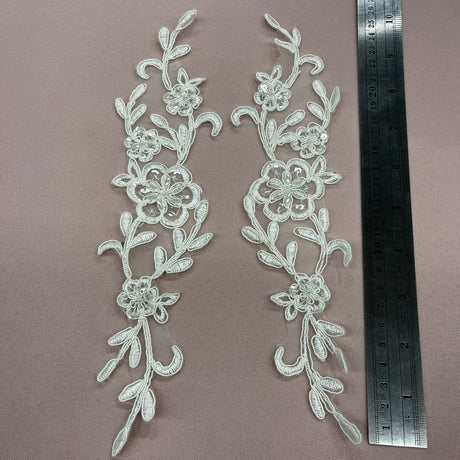 1 Pair Beaded & Corded Floral Lace Applique 10" x 3" Each Side