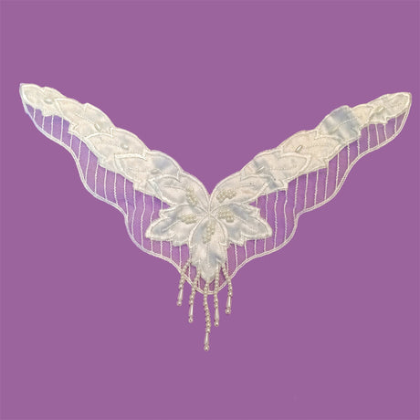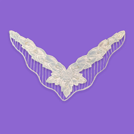 Beaded Lace Neckline Applique on Satin 10.25" x 3"