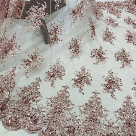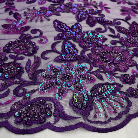 1 Yard Sparkling Beaded and Sequined Lace Fabric Embroidered on Polyester Net Mesh