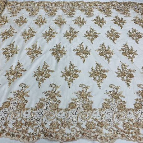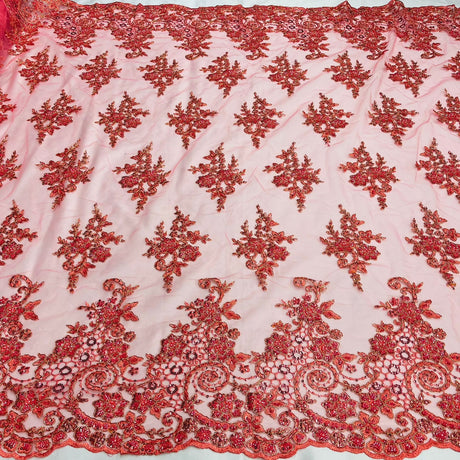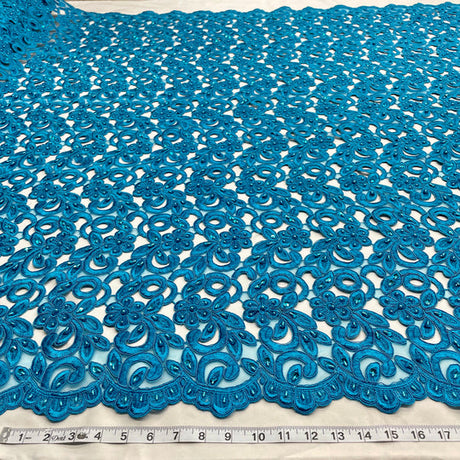 1 Yard Regal Beaded and Corded Lace Fabric Embroidered on Polyester Net Mesh