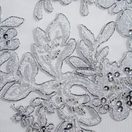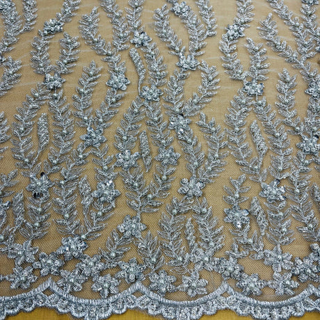 1 Yard Beaded and Corded Bridal Lace Fabric Embroidered on Polyester Net Mesh