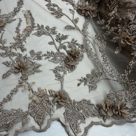 1 Yard Stunning Beaded 3D Floral Lace Fabric Embroidered on Polyester Net Mesh