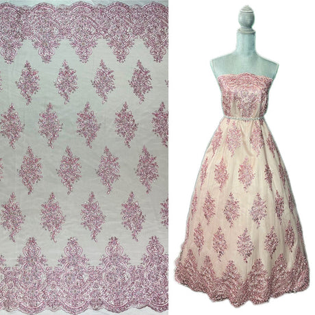1 Yard Elegant Beaded Lace Fabric Embroidered on 100% Polyester Net Mesh