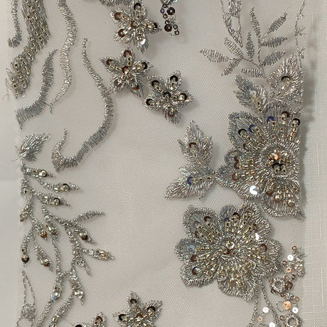 1 Yard Beaded Floral Lace Fabric Embroidered on Polyester Net Mesh 51 inch Width