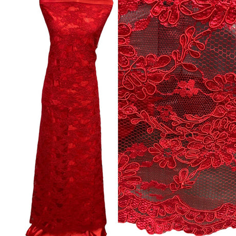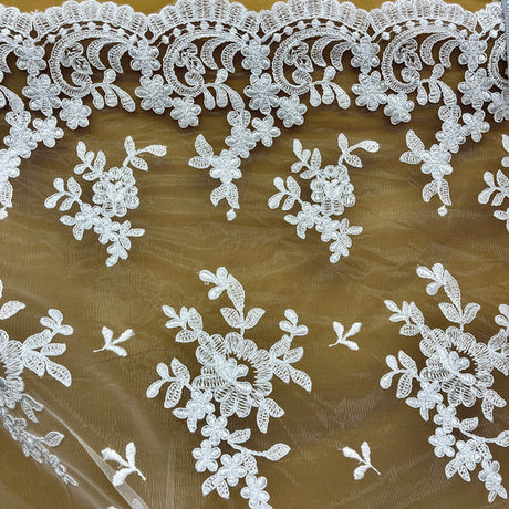 1 Yard Corded Bridal Lace Fabric Embroidered on Polyester Net Mesh 51 inch Width