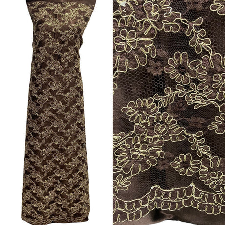 1 Yard Corded Bridal Lace Fabric Embroidered on 100% Polyester Net Mesh Gold 54" Wide