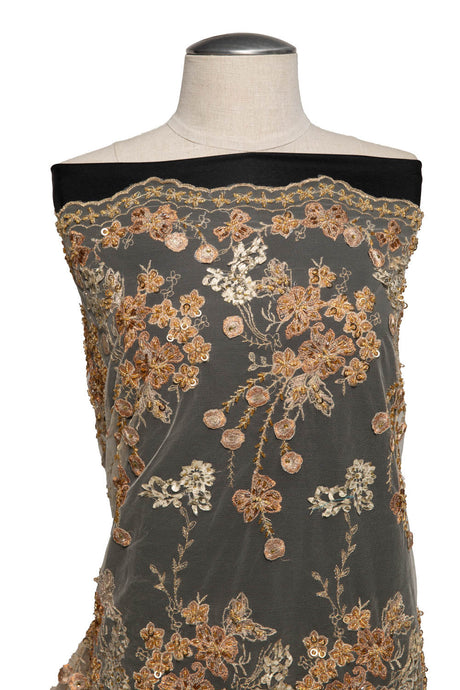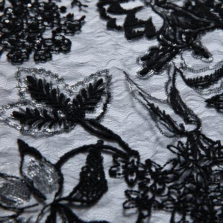 1 Yard Luxurious Sequin Embellished Tulle Lace Fabric with Ornate Embroidery 50" Wide