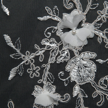 1 Yard Elegant Tulle Lace Fabric with 3D Floral Embroidery & Applique, 52/54" Wide