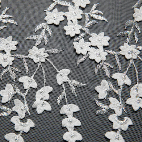 1 Yard Elegant Tulle Lace Fabric with 3D Floral Appliqué, 52" Wide Embroidered Mesh