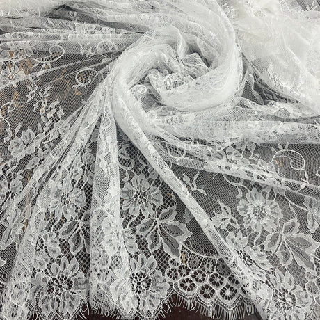 3 Yards Chantilly Embroidered Lace Fabric with Eyelash Scallop