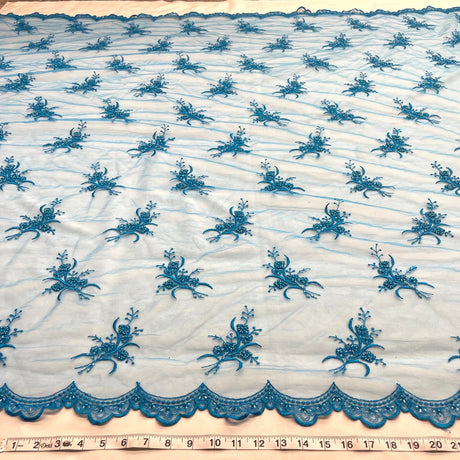 3 Yards Beaded Chantilly Embroidered Lace Fabric with Eyelash Scallop