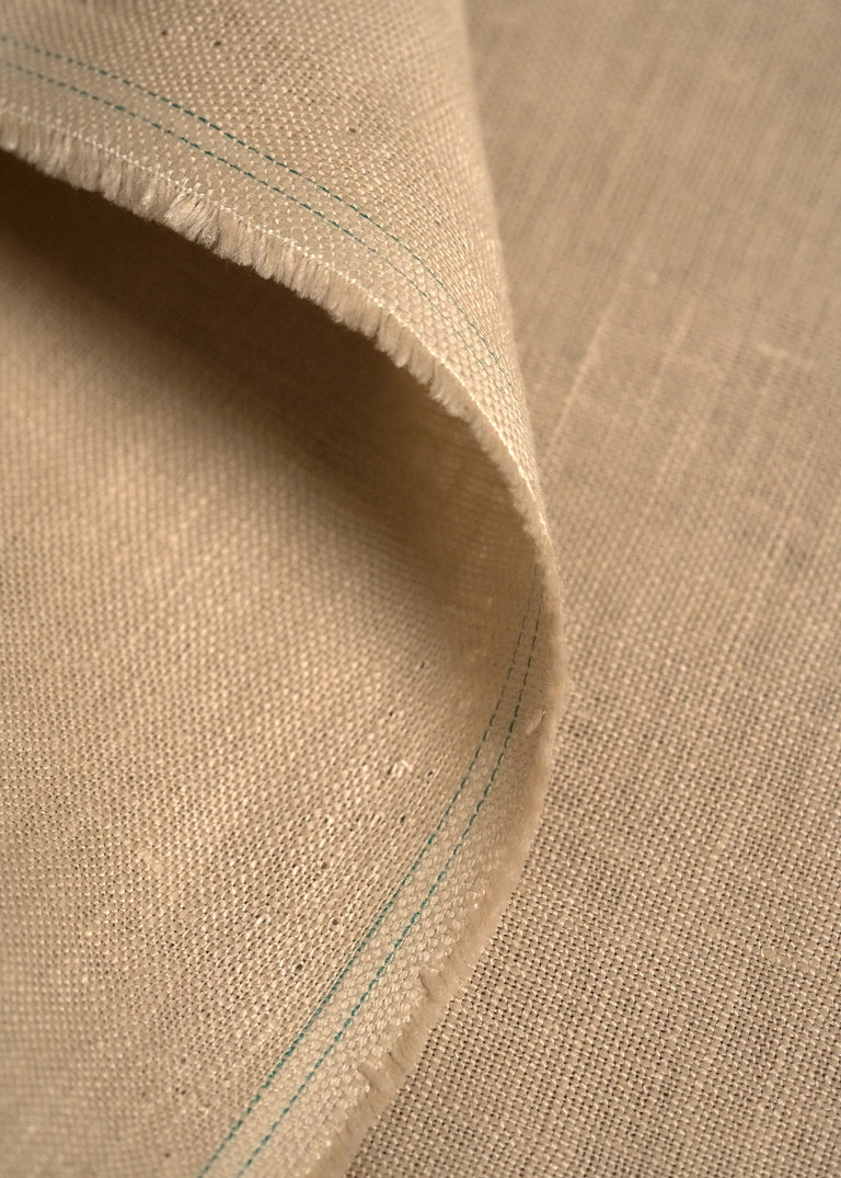 This midweight 5.7 oz/y² Pure Linen Fabric features a natural solid color with a flat weave texture. Made from 100% solid pure linen, this fabric is pre-shrunk to maintain shape and durability after washing. Ideal for apparel, upholstery, and home décor projects, it measures approximately 60 inches wide and is crafted in Ireland with premium quality.