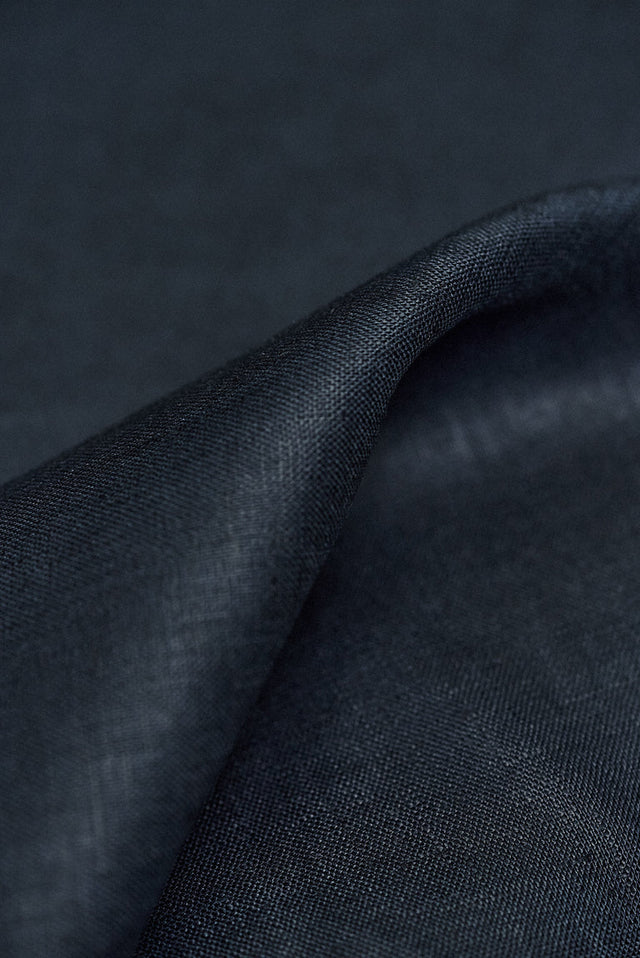 Experience the elegance of this Navy Blue Pure Linen Fabric, featuring a rich hue and a softened texture for ultimate comfort. Weighing 5.5 oz/y², this midweight fabric is made from premium French yarn and expertly woven in China, making it an ideal choice for high-quality sewing projects, from apparel to home décor.
