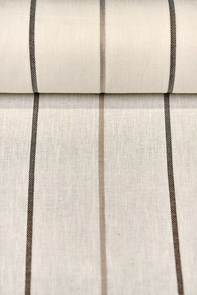 Embrace the comforting tones of our Linen Novelty Herringbone Yarn-Dyed Stripe Fabric in a rich Latte hue. This exquisite material, skillfully crafted in India, showcases a sophisticated herringbone weave subtly enhanced with a refined yarn-dyed stripe, offering a timeless and classic aesthetic. With its versatile 54-inch width and a comfortable 5.5 oz/yd² midweight, this pure linen provides both excellent drape and enduring quality. It's an impeccable choice for any crafting or sewing endeavor, destined to infuse your creations with a touch of understated luxury and classic appeal.