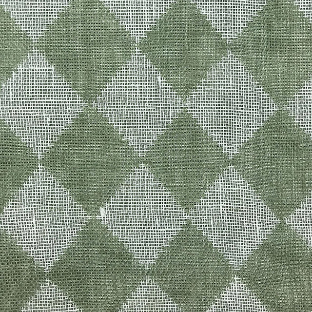 This white and sage pure linen fabric features a sophisticated yarn-dyed jacquard quilted mesh weave that adds subtle texture and elegance. At 5 oz per square yard, this midweight fabric offers a breathable yet structured option for garments, soft furnishings, and artisanal textile creations. The generous 65-inch width allows for Width, seamless applications in fashion or décor. Its flat weave and quilted double mesh structure enhance both form and function with timeless visual appeal.