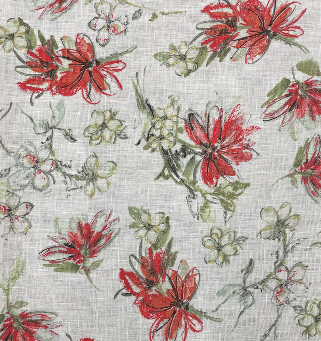 Infuse your creations with vibrant charm using our Pure Linen Red Artistic Daisy Print Fabric. This captivating textile features an expressive artistic daisy print in a lively Red, set against an Off-White background, adding a delightful and unique flair to your projects. With a versatile 5.5 oz/yd² midweight and a generous 58-inch width, this flat-weave pure linen offers a beautiful drape and breathable feel. It's an impeccable choice for crafting stylish apparel, whimsical home accents, or any creative endeavor where natural elegance meets artistic expression.