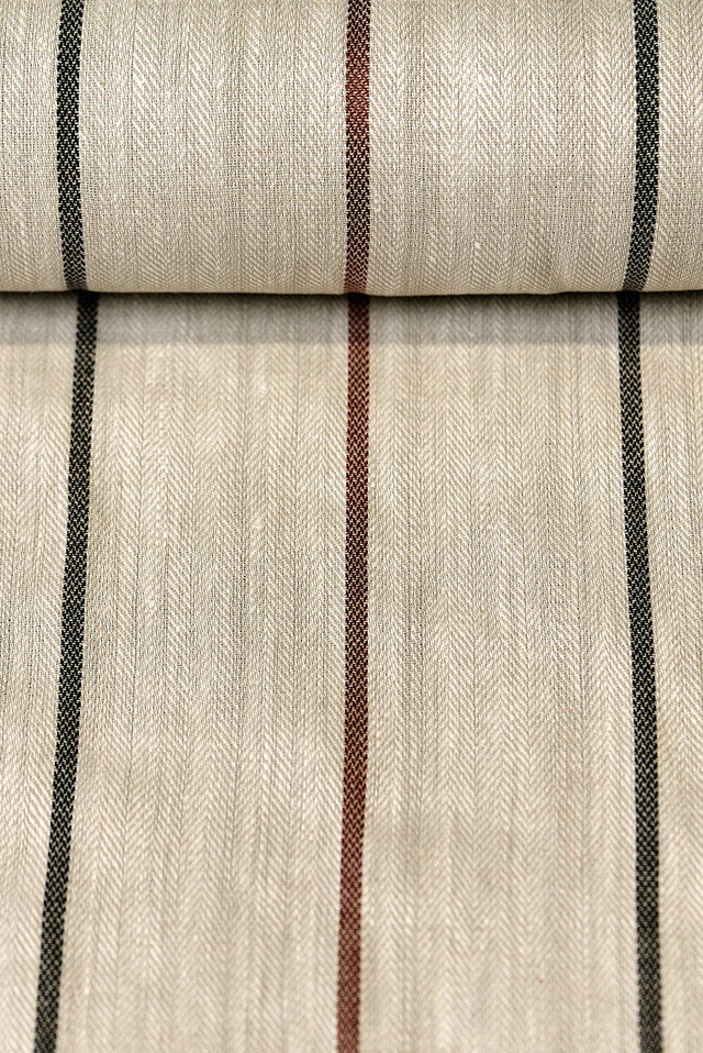 Add warmth and elegance to your projects with our Linen Novelty Herringbone Yarn Dyed Stripe Fabric in Copper color. This fabric features a subtle stripe pattern woven into a classic herringbone texture, offering visual depth and a refined look.