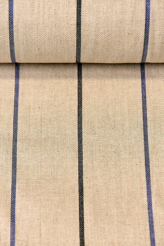 1 Yard Linen Novelty Herringbone Yarn Dyed Stripe Fabric Softened Color Navy 54" Width
