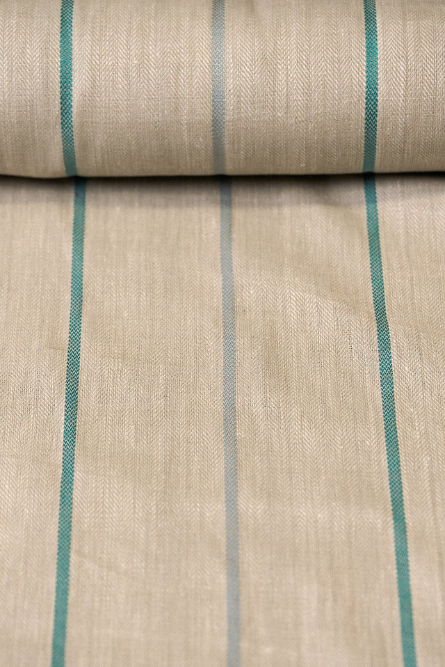 1 Yard Linen Novelty Herringbone Yarn Dyed Stripe Fabric Softened Color Ocean 54" Width