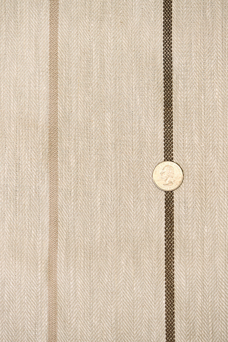 1 Yard Cocoa Linen Herringbone Stripe Natural Apparel Sewing Fabric 54" Width