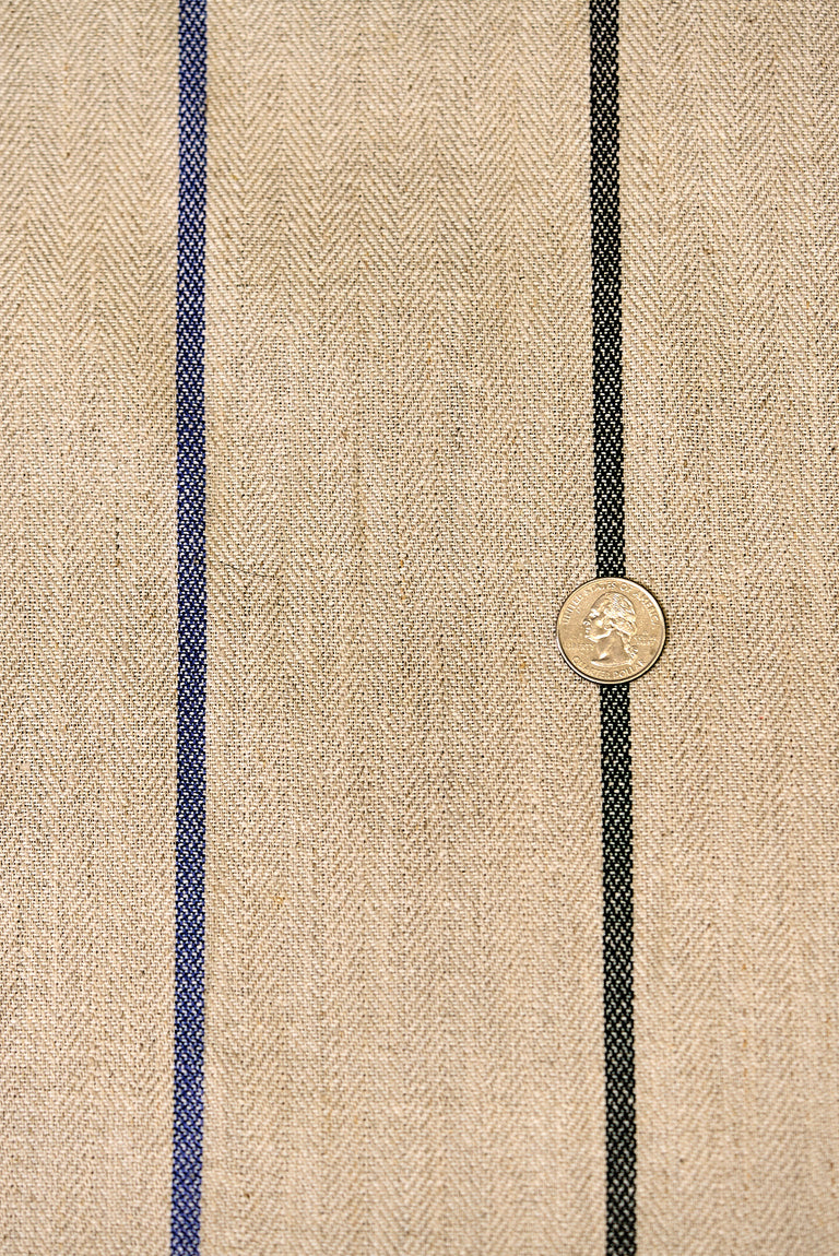 Elevate your next creation with our distinguished Linen Novelty Herringbone Yarn-Dyed Stripe Fabric in a timeless Navy hue. Expertly crafted in India, this high-quality pure linen textile showcases a sophisticated herringbone weave subtly enhanced with a refined yarn-dyed stripe, lending a classic and elegant appeal. With its versatile 54-inch width and a comfortable 5.5 oz/yd² midweight, this fabric offers both excellent drape and enduring quality. It's a superb choice for any crafting or sewing project, destined to infuse your creations with understated luxury and a truly refined finish.