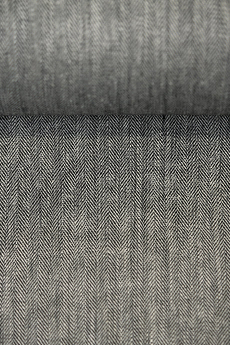 1 Yard Charcoal Linen Novelty Herringbone Yarn-Dyed Fabric Midweight 54 Inch Width