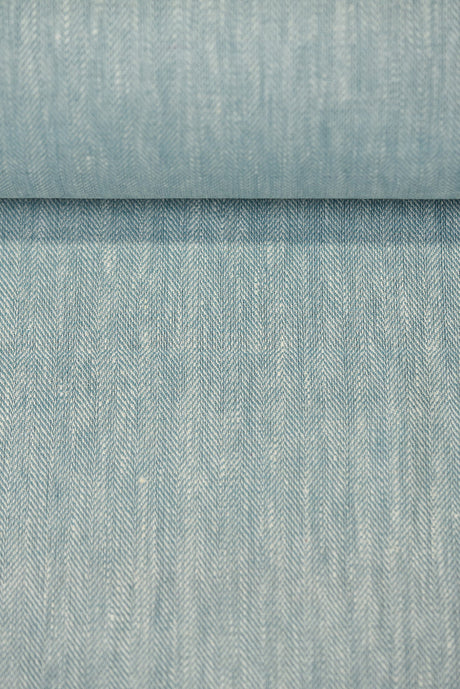1 Yard Azure Linen Novelty Herringbone Yarn-Dyed Fabric Midweight 54 Inch Width