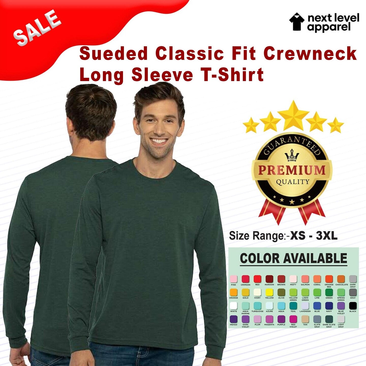 - Elevate your casual wardrobe to new heights with our Sueded Long Sleeve T-Shirt from Next Level. Immerse yourself in the sumptuous feel of 4.3 oz./yd², 60/40 combed ring-spun cotton/polyester, ensuring a perfect blend of softness and durability. Embrace hassle-free style with the tear-away label, ensuring a seamless and comfortable experience.