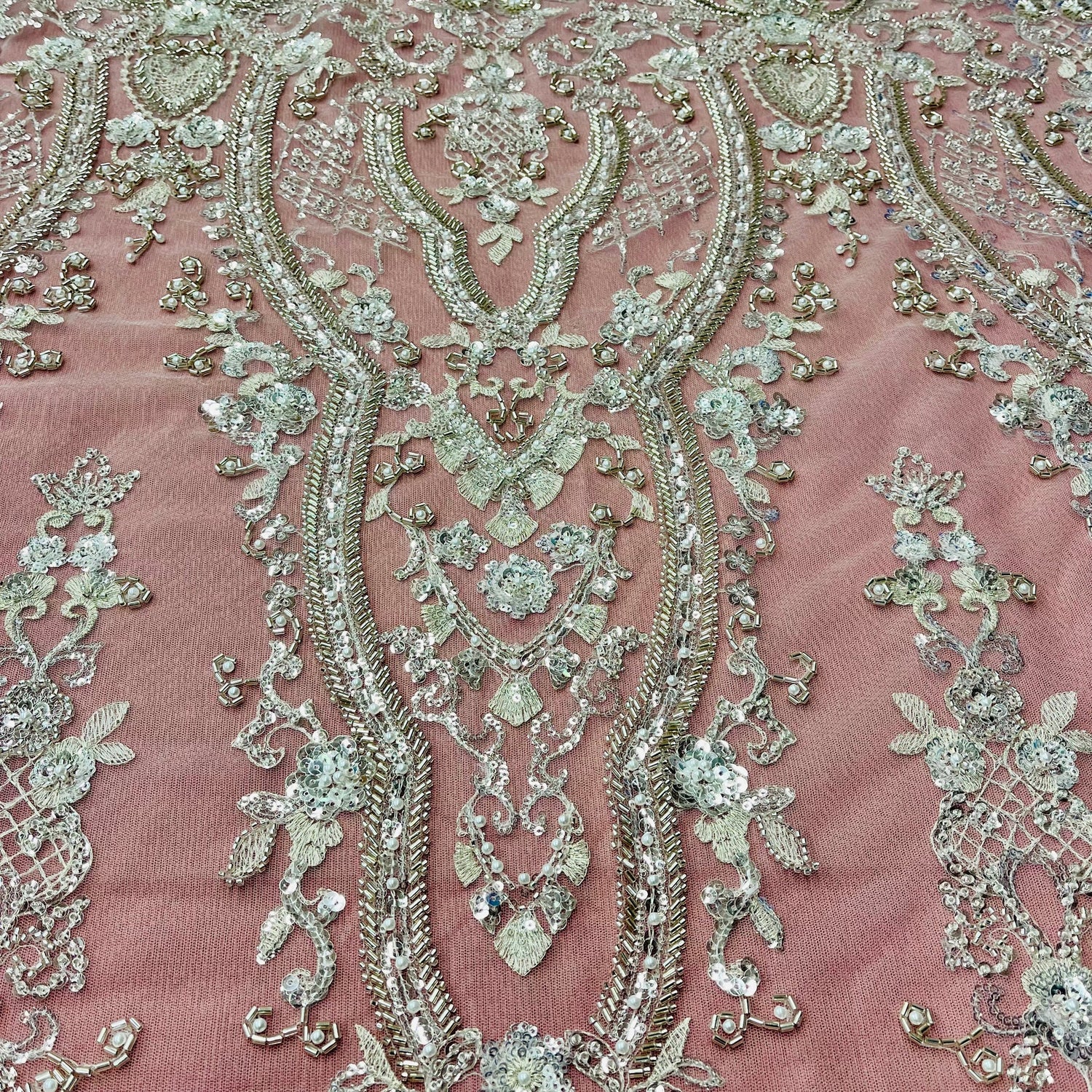 1 Yard Beaded Lace Fabric Embroidered on Polyester Net Mesh, 52" Wide Bridal & Evening Fabric