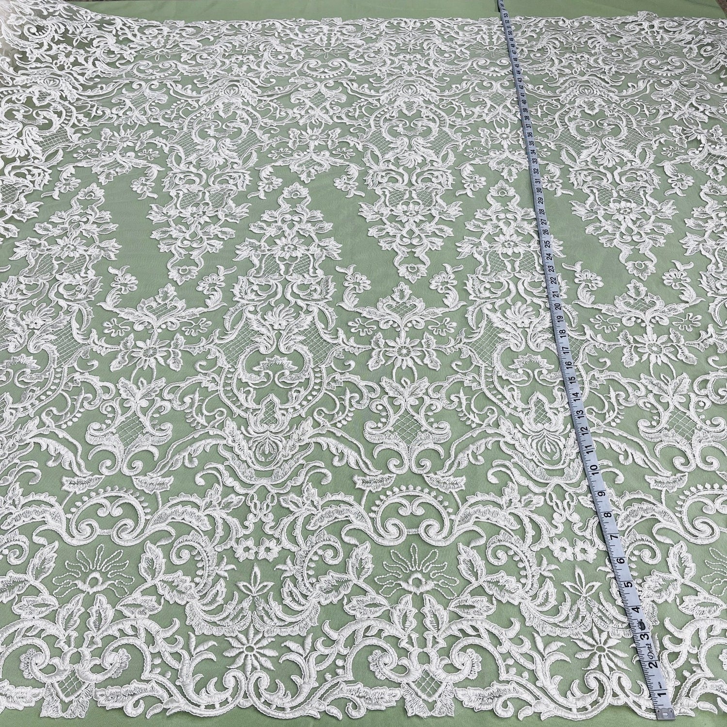 1 Yard White Corded Bridal Lace Fabric, Embroidered Polyester Mesh, 53" Wide, Elegant Wedding Fabrication