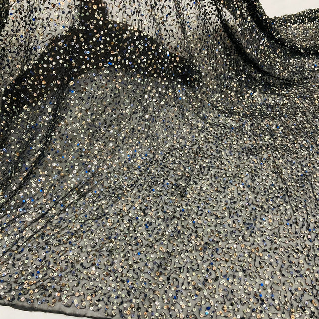 Add rich elegance to your projects with this burgundy sequined lace fabric embroidered on 100% polyester net mesh, combining lightweight comfort and shimmering detail. The 48-inch width is perfect for evening wear, formal gowns, dance costumes, and decorative overlays that demand style and sophistication. The sequins are hand-applied to create dazzling texture, while the breathable net mesh base ensures flexibility and ease of movement. Ideal for couture fashion and special occasion designs with a luxurious finish.