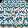1 Yard Turquoise with Silver Lace Fabric Embroidered on Polyester Net Mesh 52 Inch Width - Turquoise with Silver is backordered and will ship as soon as it is back in stock.